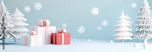 3D rendering of Christmas background with white and red gifts