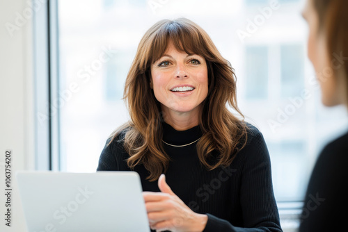 Confident Spanish businesswoman in her 40s with a warm smile in office setting