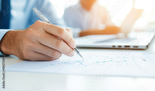 Close-up of hands holding a pen writing on paper, emphasizing focus and productivity in a professional or educational setting.