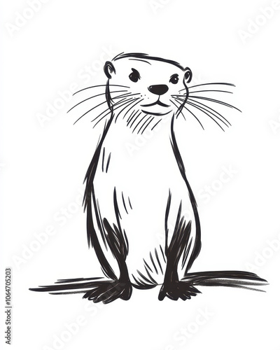 Minimalistic stick figure drawing of an otter in black ink showcasing a cute and simplistic design.