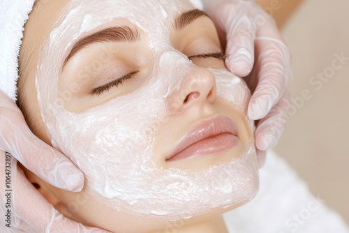 Relaxing facial treatment for Hispanic woman in a professional spa setting