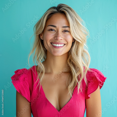 Portrait of a smiling Brazilian teen girl with flawless skin