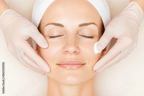 Relaxing facial treatment for Hispanic woman in a professional spa setting