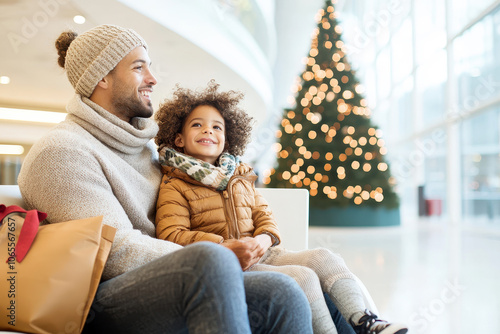 Family joyfully decorating a christmas tree in a cozy living room