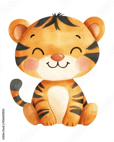 Cute happy tiger cartoon in watercolor style perfect for nursery decor and playful children's rooms