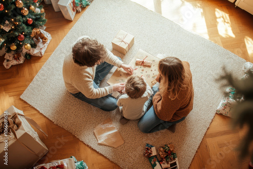 Colorful Christmas gifts and trees with festive decorations on pink background