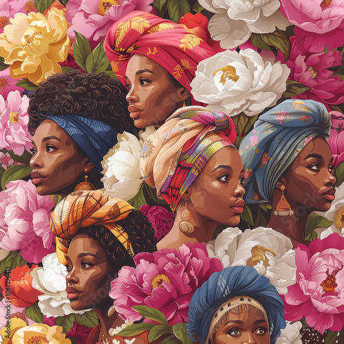 Silhouette of woman wearing colorful vibrant headwrap in profile view