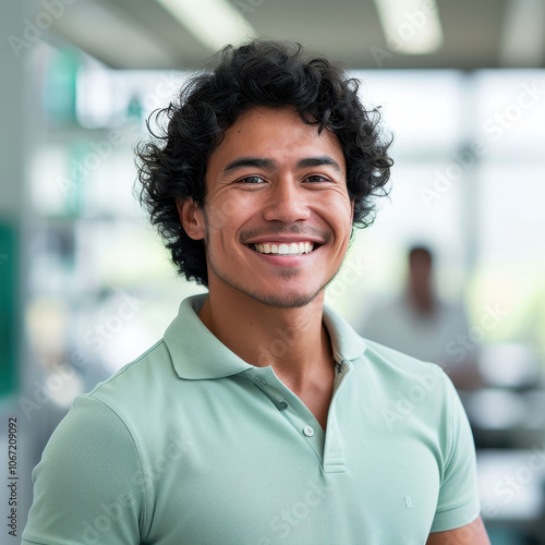 Confident Brazilian businessman in office setting with a friendly smile