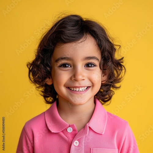Portrait of a joyful Afghan child with a bright smile and black hair