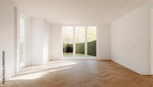 Modern minimalist interior with concrete walls and large floor-to-ceiling windows