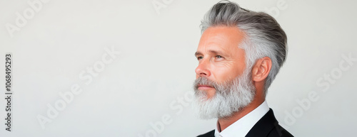 Confident middle-aged man with gray hair and beard in formal attire