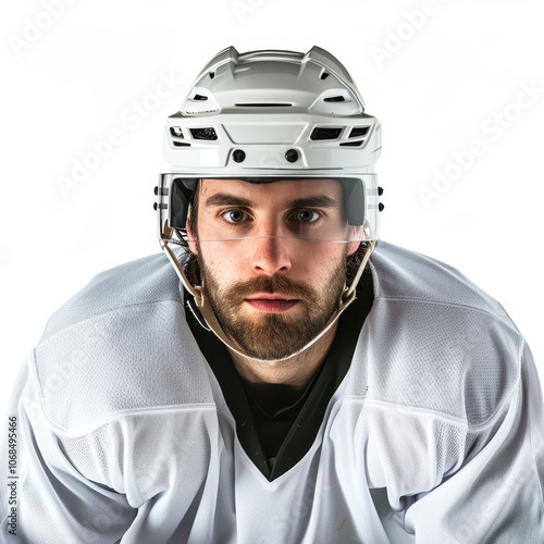 Close-up of a smiling male ice hockey player in protective gear at the rink