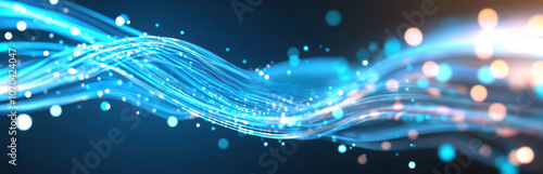 glowing particle waves background futuristic technology design with blue and purple lights modern digital