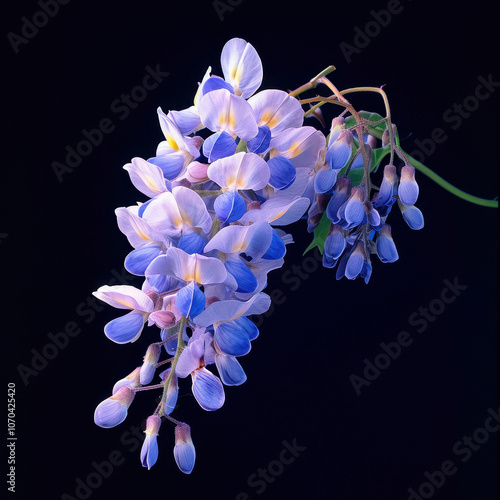 Captivating studio shot of vibrant Wisteria flower in full bloom showcasing delicate lavender and blue petals