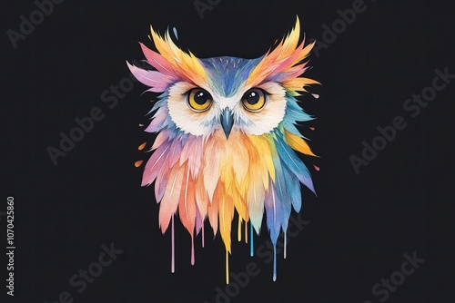 Colorful artistic hawk illustration featuring spread wings on a white background