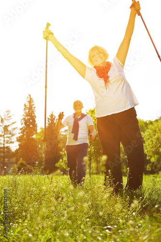 Frau macht Nordic Walking in der Natur