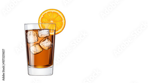 Refreshing summer cocktail with ice and colorful fruits on vibrant background