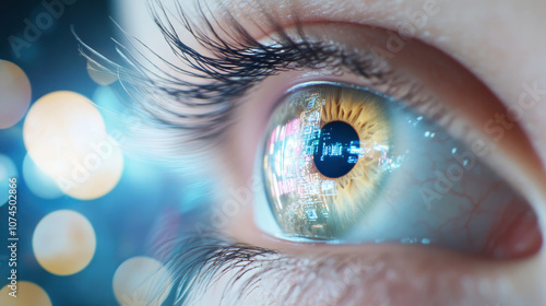 Abstract futuristic cityscape with glowing skyscrapers and light streaks