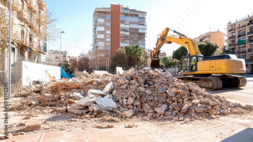 Workers resurfacing road with fresh asphalt and heavy machinery during sunny day