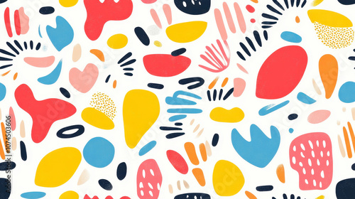 Seamless pattern with vibrant multicolored abstract dots and shapes
