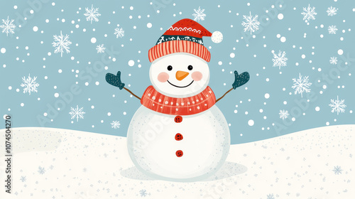 Smiling snowman illustration with Merry Christmas and Happy New Year text
