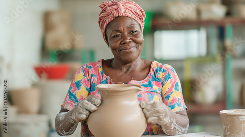 Artisan skillfully shaping clay on pottery wheel in a rustic studio