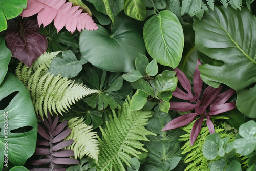 Lush greenery of tropical leaves with variegated foliage patterns