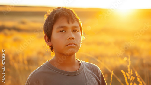 Smiling Argentine teenager enjoying a sunset in the countryside
