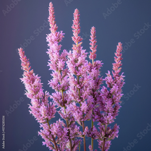 Studio shot of beautiful heather flower in full bloom displaying vibrant purple hues, capturing the delicate and intricate details of the blossoms in a professional setting.