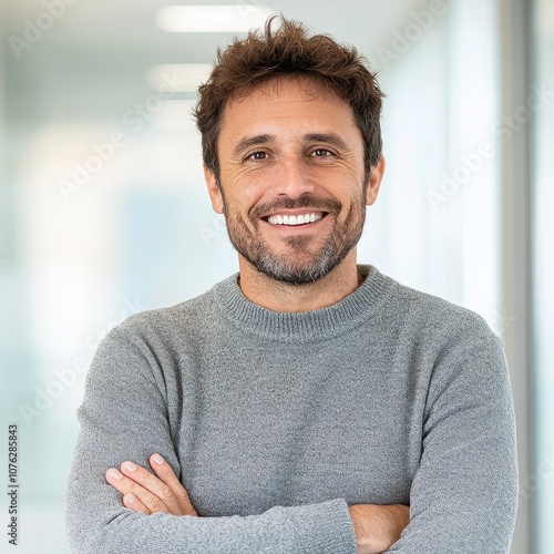 Portrait of a smiling Swedish environmental planner at work with a friendly demeanor