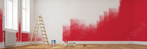 Wand im Zimmer einer leeren Wohnung mit Balkon