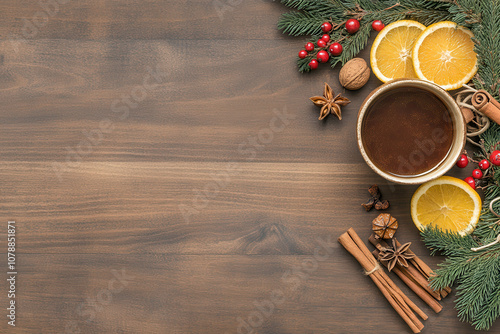 Warm Ceylon mulled wine with cinnamon and star anise in glasses