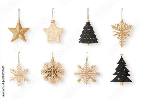 Elegant Christmas greeting card with snowflakes and hanging ornaments design