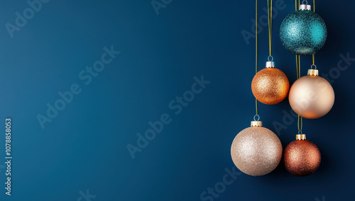 Christmas tree balls hanging from ceiling as christmas decoration background