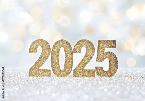 Golden foil balloons displaying year 2026 surrounded by festive silver confetti