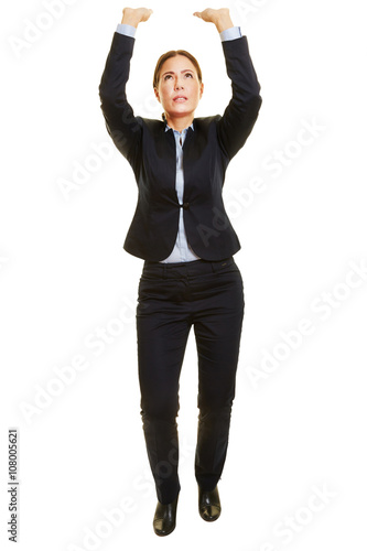 Geschäftsfrau hebt imaginäres Objekt nach oben