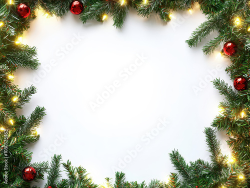 Festive Merry Christmas and Happy New Year with decorated fir branches and ornaments