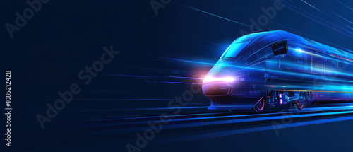 Dynamic blue light trails curving in the dark, representing speed and motion