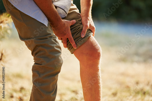 Alter Mann hat Schmerzen im Knie