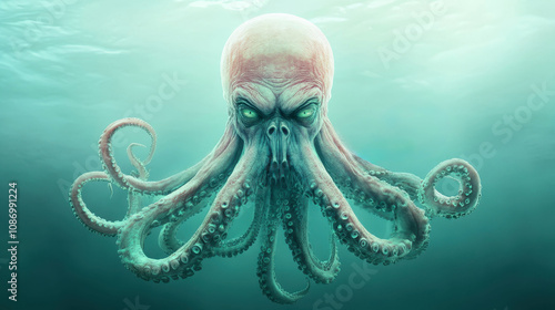 Mystical Cthulhu sea creature with tentacles in artistic illustration