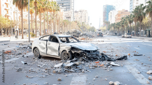 Rainy street scene with flowing water during a heavy downpour capturing urban weather effects and transportation challenges