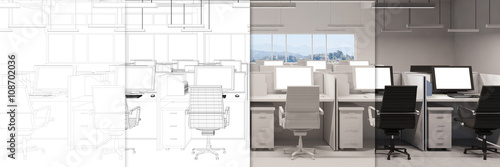 Modernes Großraumbüro mit Computer Arbeitsplätzen