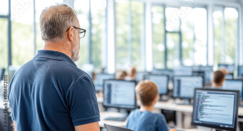 Confident black woman teacher standing in a classroom, arms crossed, with students in the background