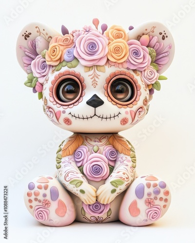 Exquisitely detailed sugar skull animal with floral design for decoration