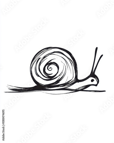 Minimalistic stick figure drawing of a snail in black ink emphasizing simplicity and elegance