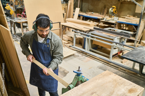Teamwork in a lumberyard with apprentices and skilled mentor