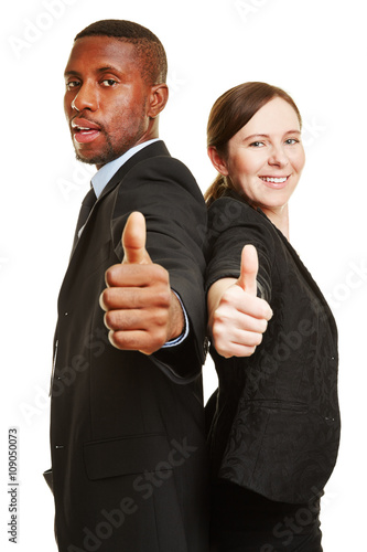 Daumen Hoch Silhouetten vor Business Portraits als Teamwork Konzept