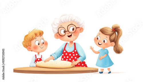 Illustration of a loving father holding a baby and spending time with playful children full of joy and happiness
