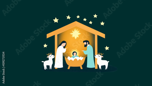 Transparent glass ornament displaying a nativity scene on a snowy surface