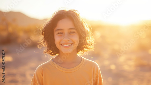 Young Mexican girl enjoying sunset in a serene desert landscape